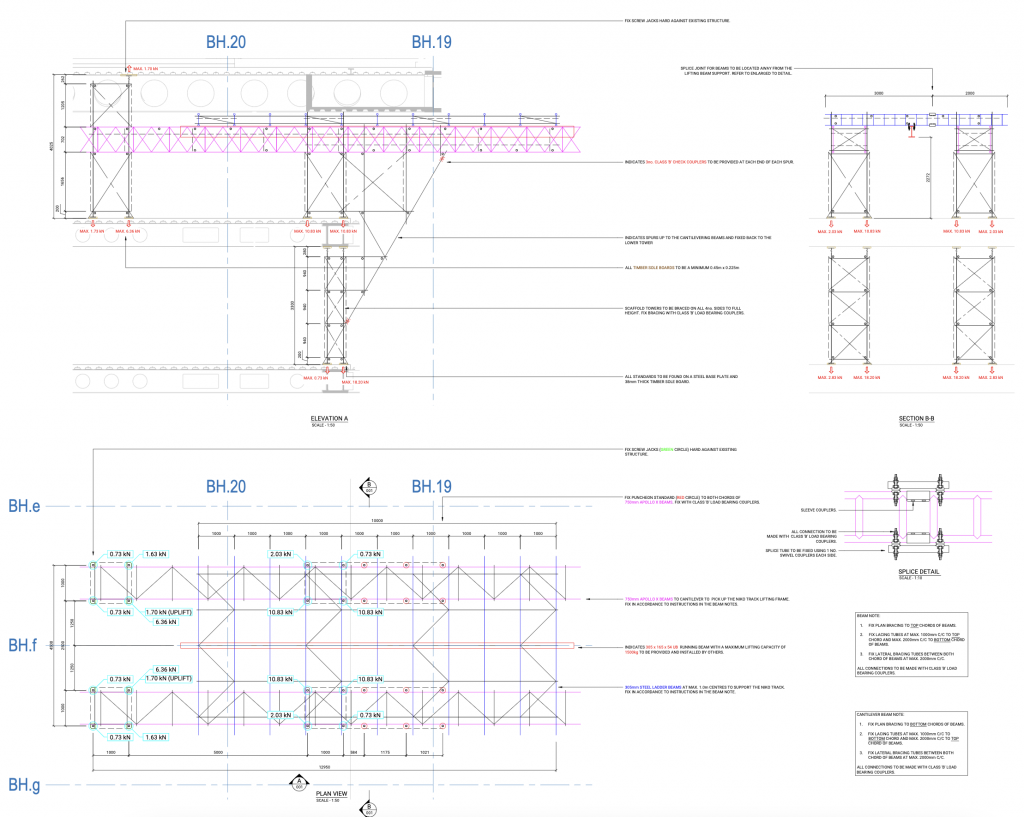 We provided scaffold designs for scaffold lifting gantry, freestanding scaffold birdcages, cantilevered scaffolds, scaffold bridges, heavy duty scaffold gantries.